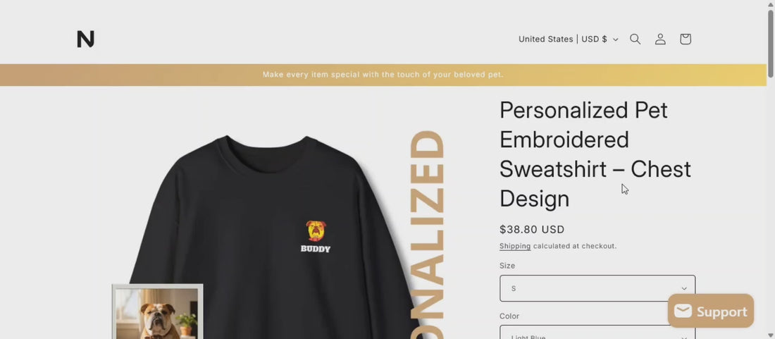 Personalized Pet Embroidered Sweatshirt – Center Design